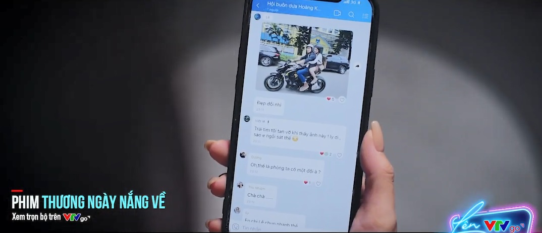 Trong một diễn biến khác, Trang trở về nhà sau giờ làm và thấy ảnh của Ly ngồi sau xe Duy được mọi người gửi trong nhóm chung kèm những lời bình luận như: “Phòng ta có một đôi”, “Đẹp đôi nhỉ”… Trang tỏ rõ gương mặt khó chịu, tức giận. Trang thậm chí còn tự than thở: “Bạ ai cũng chở, thế mà lúc nào cũng tỏ ra chân tình lắm ấy”.