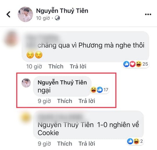 Nhận ý kiến mang tính "cà khịa", Tiên Cookie chẳng ngại đối đáp cực căng. Bên dưới các bình luận từ khán giả, Tiên Cookie thể hiện thái độ giễu cợt bằng những từ như: "Ngại", "Tuổi", Lướt". Ngay lập tức, những bình luận này được chụp lại và chia sẻ vào các group về showbiz, đa phần ý kiến của khán giả về Tiên Cookie là khá tiêu cực. Không ít người nặng lời chỉ trích Tiên Cookie là ngạo mạn và ngông cuồng: "Hãy xem thái độ của đại nhạc sĩ đối với khán giả này", "Xem thường người khác đến thế là cùng. Tôi tẩy chay Tiên Cookie", "Thái độ ngạo mạn và xem mình là duy nhất. Không có khán giả thì ai sẽ nghe nhạc của Tiên. Tiên cứ sống trên mây thế thôi chứ", "Nhạc sĩ gì mà không xem khán giả ra gì. Xin có chút tự trọng nhé Tiên".