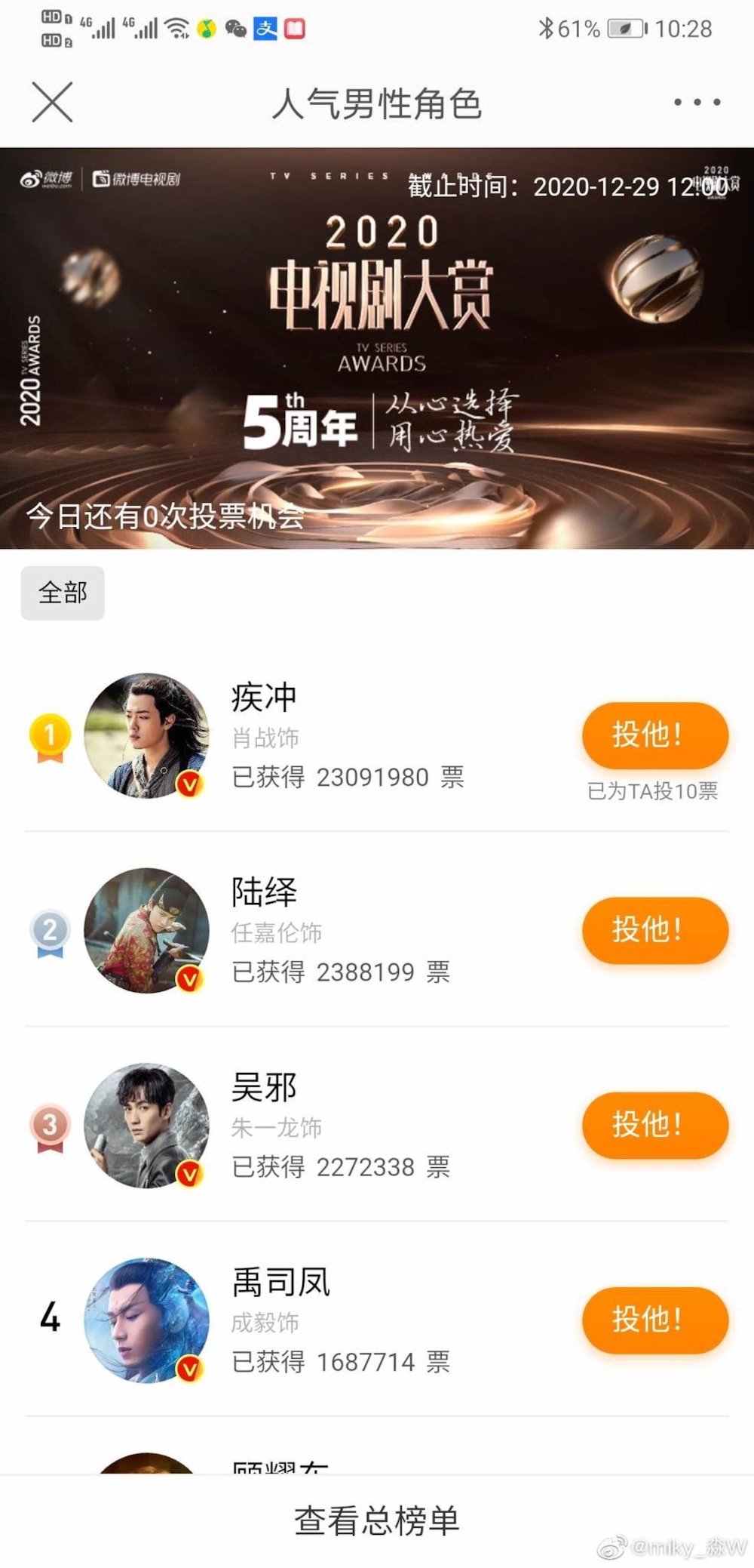05/12/2020 21:45Tiêu Chiến được fan bình chọn nhiệt tình đến nỗi hệ thống bị quá tải