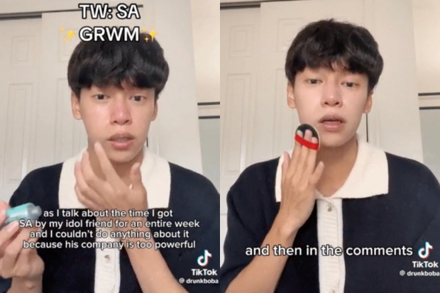 Mới đây, TikToker 401,9 nghìn người follow mang tên drunkboba khiến xứ Hàn dậy sóng khi tung clip tố cáo 1 idol Kpop (gọi tắt là A) vì hành vi tấn công tình dục. Nam TikToker này cũng được biết đến với nhiều kỹ năng vũ đạo không vừa khi cover các ca khúc Kpop. "Tôi bị người bạn làm idol quấy rối tình dục suốt 1 tuần, tôi chẳng thể làm gì vì công ty của anh ta quá quyền lực", drunkboba kể lại.