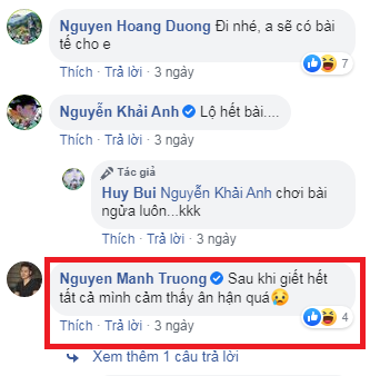 Bên cạnh đó, nam diễn viên Nhan Phúc Vinh (vai Minh) cũng từng bình luận trên bài đăng của Thùy Anh (vai Ánh), cho biết anh đã khá mệt mỏi sau nhiều ngày liên tiếp quay các cảnh bi đát của phim.