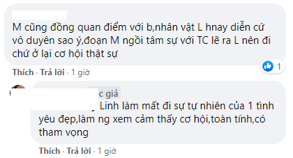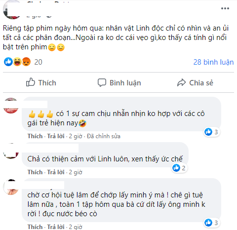 Trong lúc Minh đau khổ nhất, Linh luôn bên cạnh an ủi. Tuy nhiên, nhiều khán giả cho rằng hành động của Linh không khéo léo, thậm chí vô duyên. Trên một group bàn luận về phim, Linh lại trở thành nhân vật bị 'ném đá'.