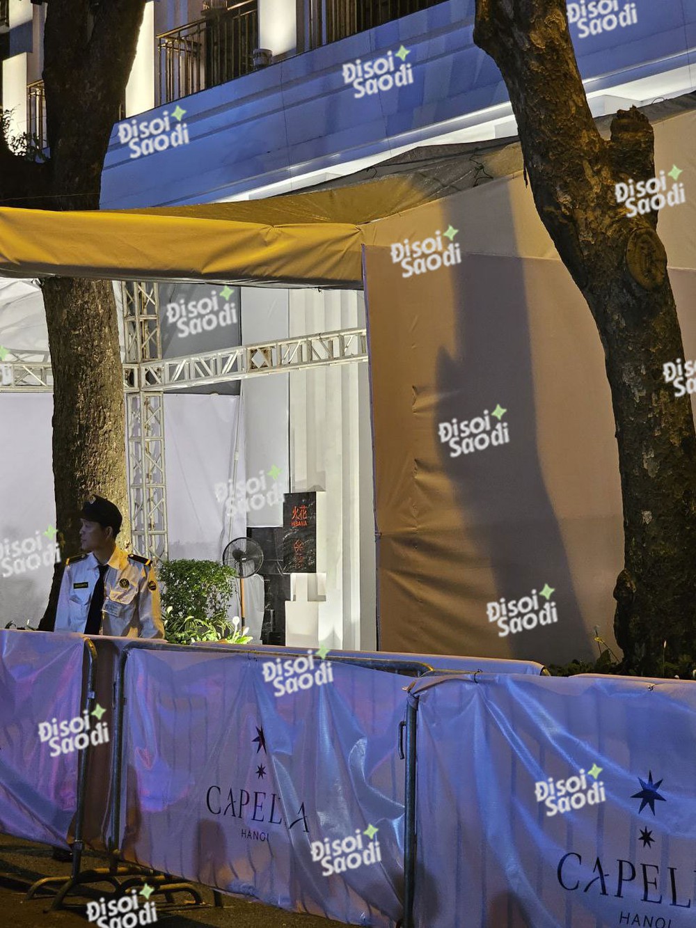 Dù còn khá lâu mới đến lúc BLACKPINK về khách sạn nhưng rất đông người hâm mộ cũng có mặt tại đây. Tuy nhiên, phía khách sạn có động thái đảm bảo an ninh cực kỳ nghiêm ngặt, sử dụng rào 3 lớp và quây kín bạt các khu vực nhằm đảm bảo an toàn và riêng tư cho 4 cô nàng "Hắc Hường". Con đường Lê Phụng Hiểu quanh khách sạn CAPELLA đông kín người và các phương tiện giao thông rất khó di chuyển qua.