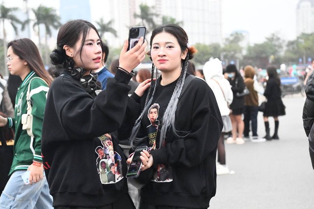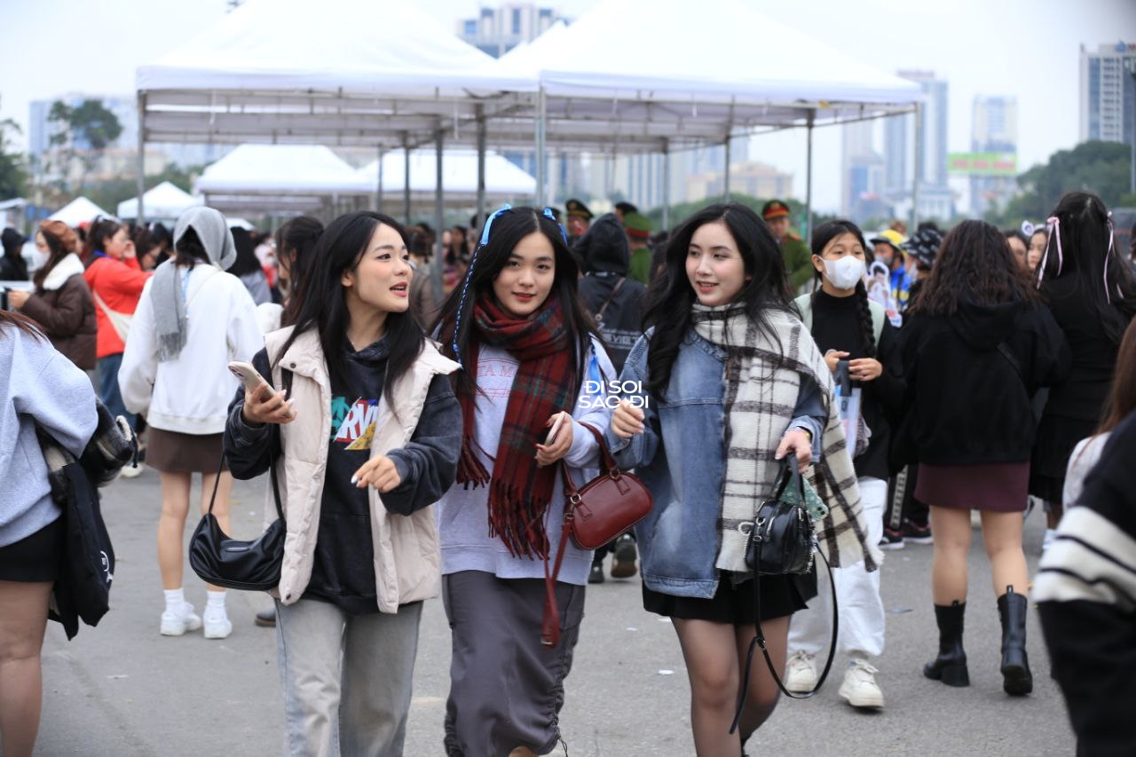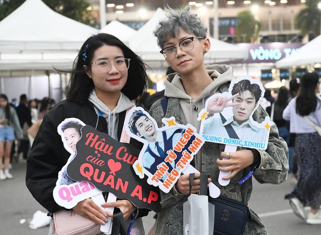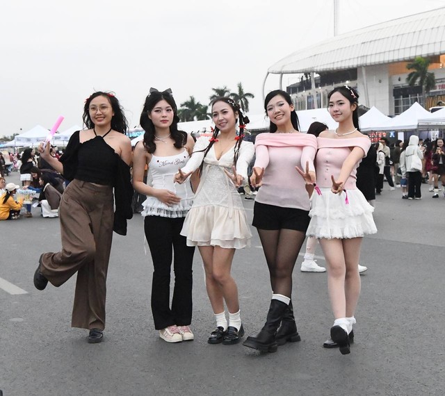 Sát giờ diễn ra concert, SVĐ Mỹ Đình như biến thành sàn diễn thời trang. Dàn trai xinh gái đẹp đổ bộ, khoe những bộ cánh "chất lừ", mỗi người một phong cách. Nhiều người còn chuẩn bị banner in hình idol, trao đổi card bo góc với nhau. Không khí tưng bừng như concert quốc tế.