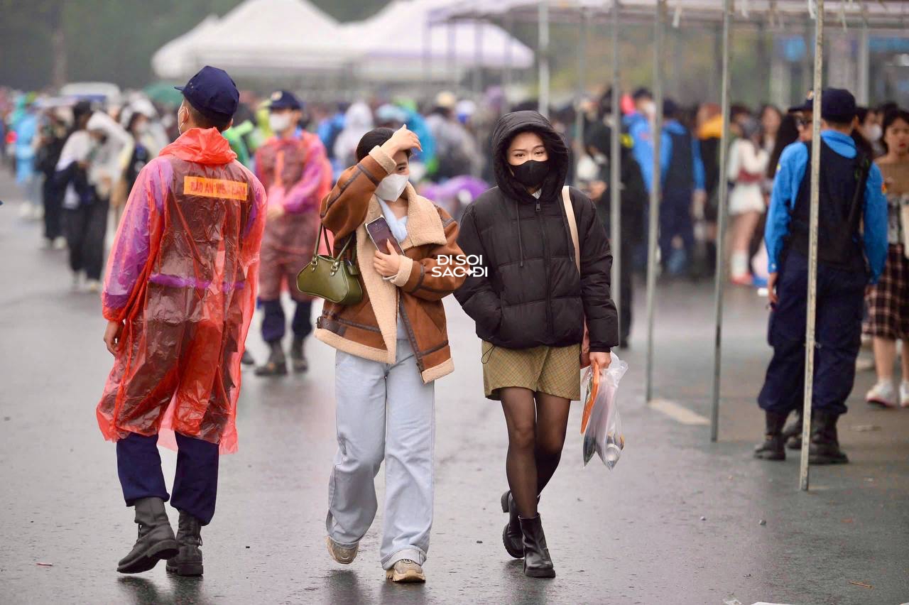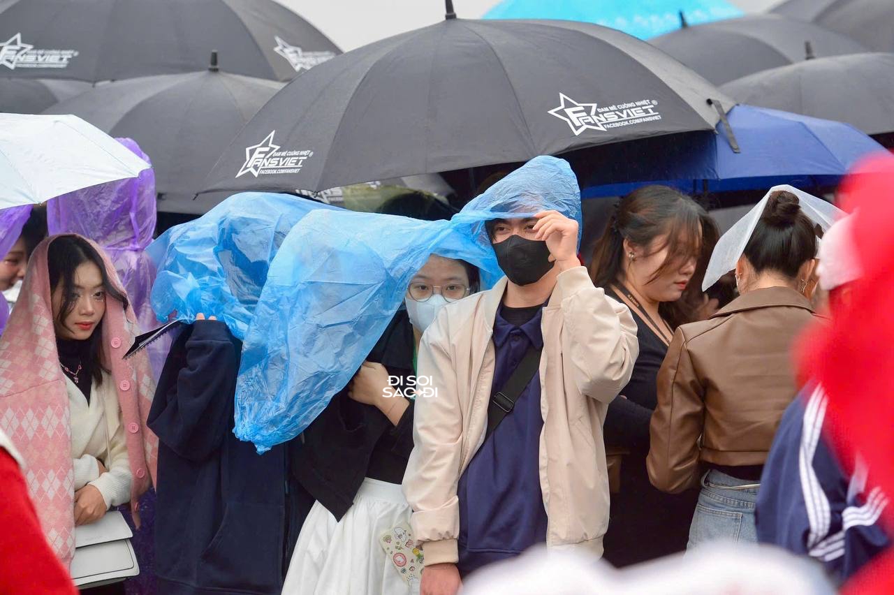 Hiện tại thời tiết Hà Nội đã vào đông. Trời rét cộng với mưa phùn lất phất càng khiến thời tiết thêm phần khắc nghiệt. Nhiều fan "lên đồ" xinh đẹp, mang cùng áo phao, áo da vẫn không thể chống chọi với cái lạnh. Bắt đầu có nhiều fan mặc áo mưa vừa để khỏi ướt vừa để thêm ấm.