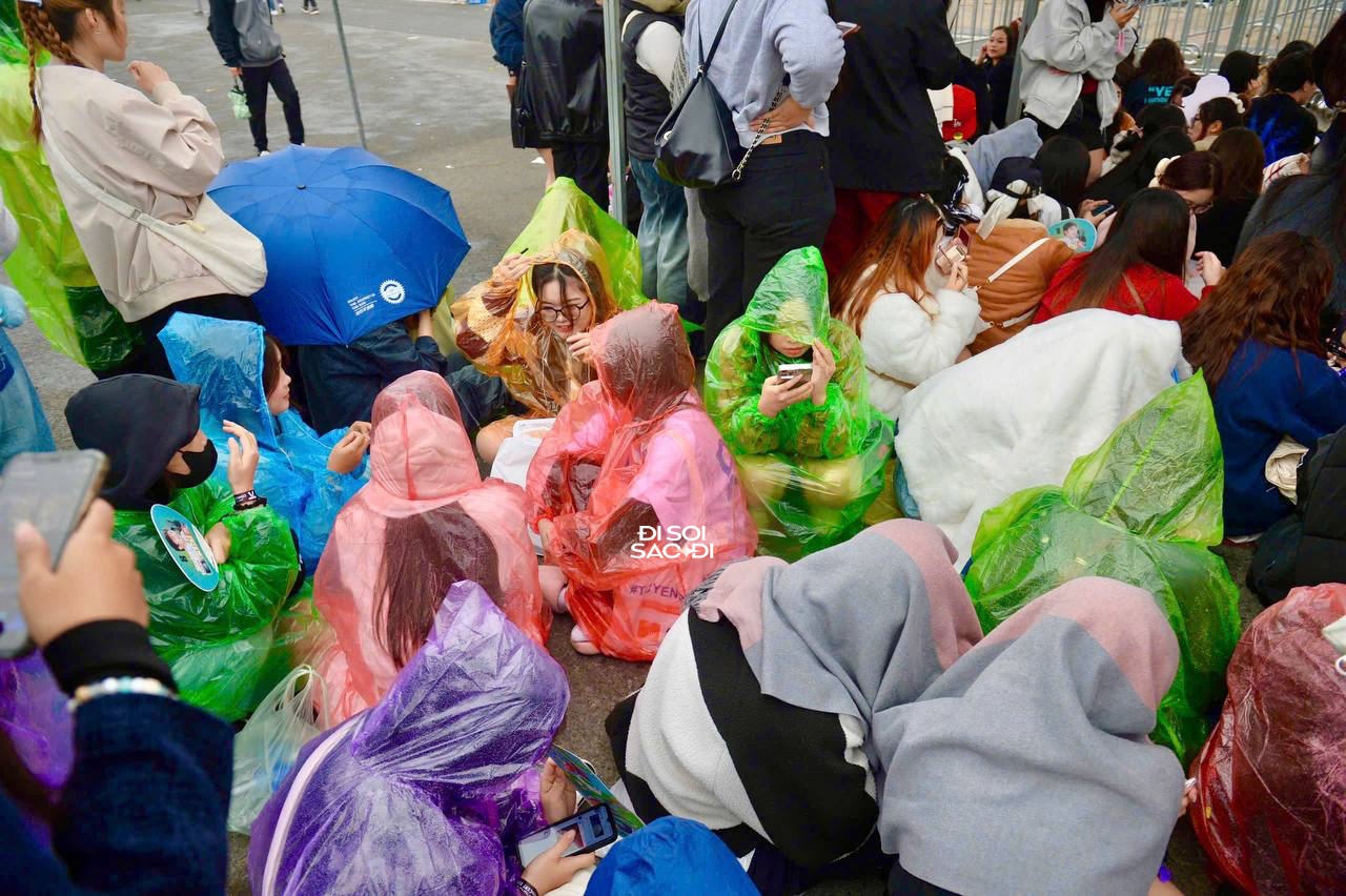 Nhưng "dân chơi thì không sợ mưa rơi", dù chờ đợi mệt mỏi cộng thời tiết lạnh ướt, thì tinh thần đu idol của các fan Anh Trai Say Hi vẫn cháy hừng hực. Ai nấy đều vui vẻ chờ đến giây phút concert chính thức sáng đèn.