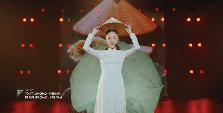 Không "slay", sang chảnh như thường thấy mà là vẻ đẹp dịu dàng, nết na của người con gái Việt. Khoảnh khắc Tóc Tiên ánh mắt sáng rực, tràn đầy vẻ tự hào ở đoạn cuối Hello Việt Nam mãi được fan khắc ghi.