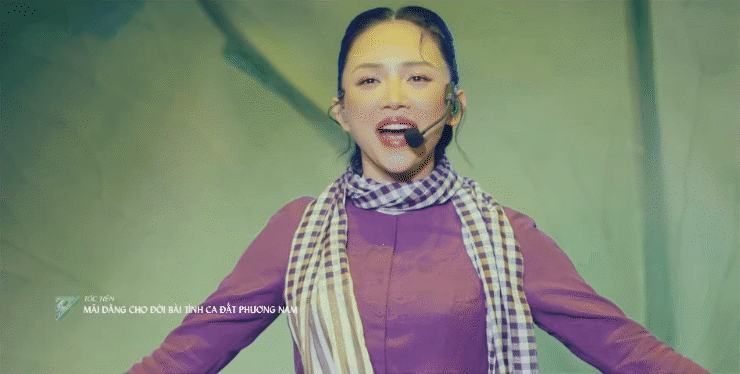 Tóc Tiên chuyển đoạn cực mượt từ quan họ sang hò miền Tây và kết bài cùng Hello Việt Nam, tạo hình, trang phục và thiết kế trang phục cũng linh hoạt thay đổi theo kết cấu bài hát. Tóc Tiên chơi lớn thay đồ luôn trên sân khấu mà không ảnh hưởng đến nhịp điệu tiết mục. Visual Tóc Tiên chiếm trọn spotlight.
