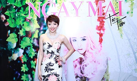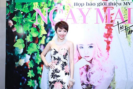 Chiều ngày 06/02, Tóc Tiên xuất hiện nổi bật với chiếc đầm hở vai gợi cảm để giới thiệu MV "Ngày mai" của chính cô. |