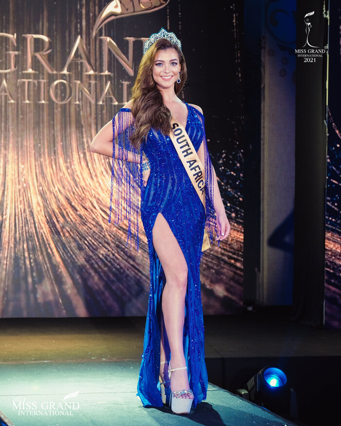 Ở mỗi sự kiện hoạt động bên lề, Thùy Tiên đều đo ni đóng giày từng bộ váy phù hợp với hoàn cảnh. Trong buổi lễ ra mắt chào sân Miss Grand 2021, Thùy Tiên chơi lớn khi diện trên mình bộ váy màu vàng ánh kim xuyên thấu và xẻ eo xuống tận rốn.