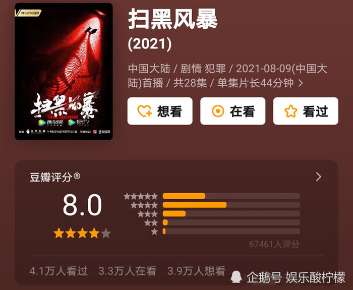 Tảo hắc phong bạo được phát sóng cùng lúc trên 4 kênh lớn gồm CCTV 8, truyền hình Đông Phương, truyền hình Bắc Kinh, Tencent. Không chỉ có dàn diễn viên xuất sắc, phim còn được dàn dựng công phu từ cốt truyện đến tạo hình nhân vật. Ngoài ra, bộ phim này giành được rất nhiều lời khen trên trang Douban. Phim hiện đạt 8 điểm douban với 77,6% đánh giá 4 sao và 5 sao.
