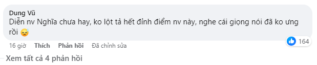 - Diễn viên đóng vai Nghĩa chưa hay, không lột tả được hết đỉnh điểm nhân vật này, nghe cái giọng đã không ưng rồi!