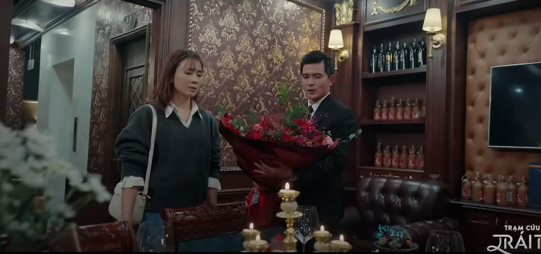 Dù đã bị lộ tẩy, Nghĩa vẫn bình thản bảo Hà ngồi xuống đã rồi nói chuyện bởi anh đã mất rất nhiều công sức, lên ý tưởng cho bữa tối hôm nay vậy mà Hà chẳng có chút cảm động nào. Nghĩa còn tặng Hà bó hoa và bảo anh còn chọn đúng loại hoa mà cô thích nhất. Đáng nói bó hoa này chẳng khác gì bó hoa mà vừa trước đó Nghĩa đã tặng An Nhiên.