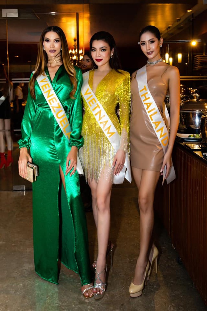 Mới đây, tham gia buổi tiệc tối cùng dàn thí sinh, Trân Đài nổi bật khi diện mẫu váy màu vàng kim tuyến với đường xẻ ngực táo bạo. Cô khoe lợi thế làn da trắng giữa dàn thí sinh.