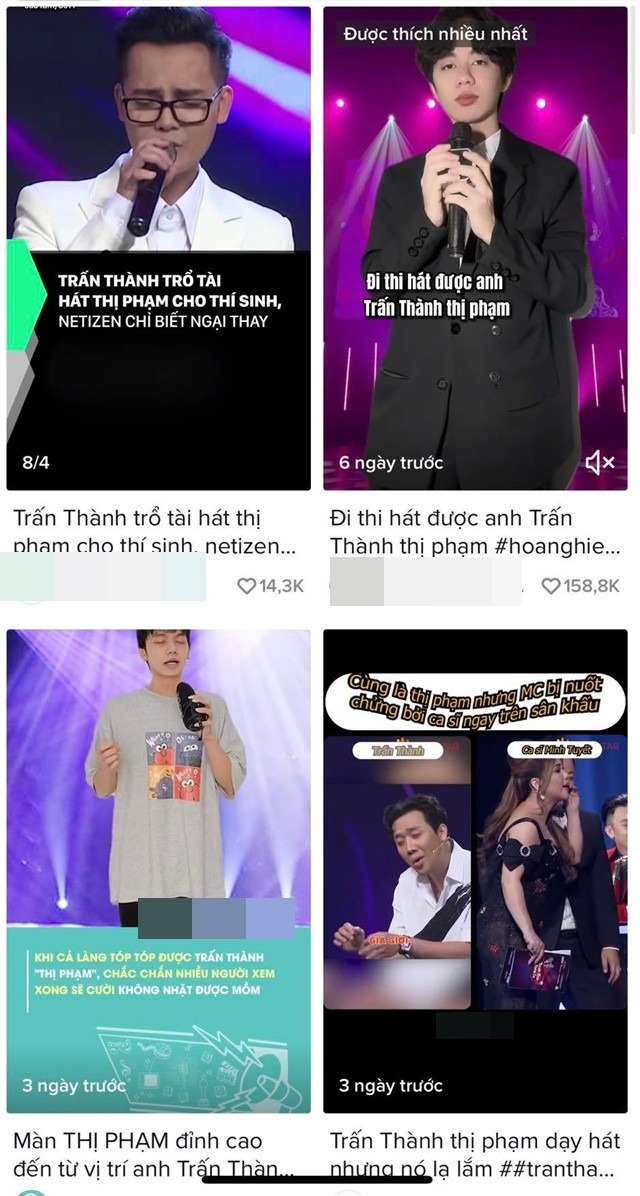 Những ngày gần đây, đoạn clip Trấn Thành hát thị phạm trong 1 chương trình âm nhạc hot trở lại. Rất nhiều ý kiến trái chiều xoay quanh đoạn clip này. Sau đó, nhiều Tiktoker nổi tiếng hàng triệu follow đã “bắt trend”, cắt ghép các clip “cà khịa” màn thị phạm của Trấn Thành khiến người xem không nhịn nổi cười.