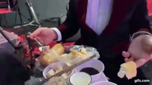 Đang ăn, Trấn Thành bỗng nhớ ra điều gì, anh quay lại nhìn ngó một lúc rồi thốt lên: "Ấy chết, quên mất ông Sâm, phải để phần cho ông Sâm ông ấy ăn".