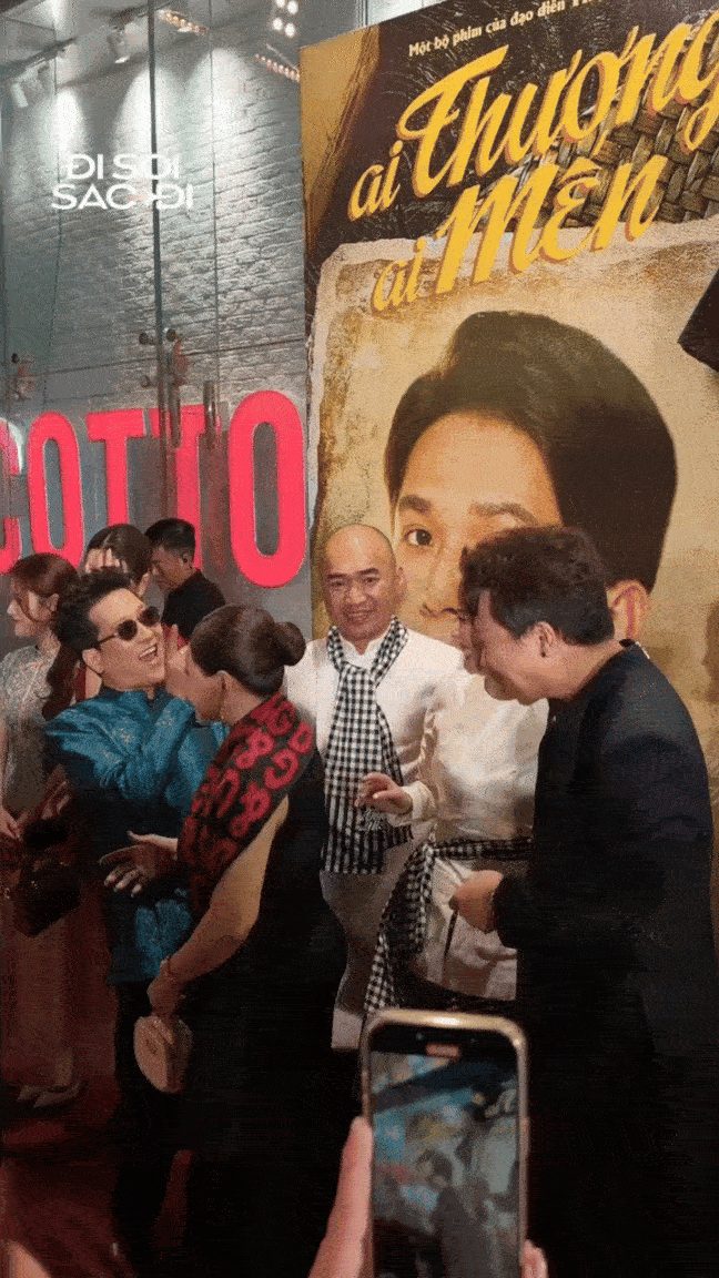 Đạo diễn phim Mai diện vest đen lịch lãm, bẽn lẽn tiến đến chúc mừng đàn chị. Đáp lại, Thu Trang không giấu được sự bất ngờ và hạnh phúc, cả hai vui vẻ bắt tay và trò chuyện thân mật, xóa tan những xì xào về việc "né mặt" nhau trước đó.