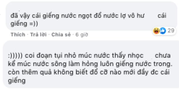 - Mạch nước ngầm bị tắc rồi à? Sao lại đồ đầy miệng giếng được?