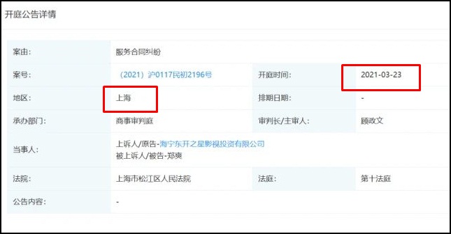 Theo thông tin từ trang QCC, phía sản xuất của phim Người Tình Phỉ Thúy - Công ty TNHH Đầu tư Điện ảnh và Truyền hình Đông Khai Chi Tinh đã lập hồ sơ khởi kiện Trịnh Sảng do tranh chấp hợp đồng dịch vụ. Có thể thấy, phía sản xuất Người Tình Phỉ Thúy đã chịu tổn thất nặng nề sau nhiều đợt hoãn chiếu (kéo dài 5 năm kể từ 2016). Vì vậy, họ không thể làm gì khác ngoài việc khởi kiện Trịnh Sảng khi những lùm xùm của cô đã gần như dập tắt hoàn toàn tia hi vọng ra mắt của dự án phim. Theo QCC, phiên tòa sẽ diễn ra tại Thượng Hải vào ngày 23/3 tới.