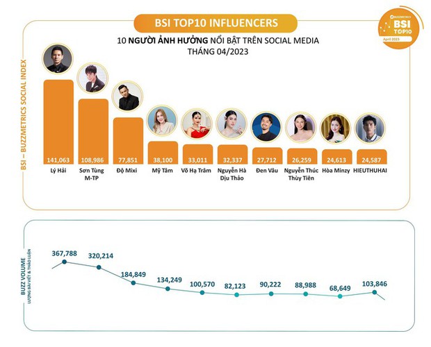 Mới đây, chuyên trang Buzzmetrics đã đưa ra thống kê và bảng xếp hạng 10 nhân vật có sức ảnh hưởng nhất tháng 4/2023.