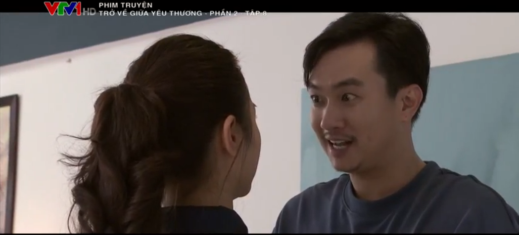 Mở đầu Trở về giữa yêu thương tập 8 - phần 2 là cảnh vợ chồng Yến nói chuyện với nhau. Cô đang cảm thán hành động của chồng mình khi đánh anh rể hôm trước. Toàn nói rằng ăn chỉ muốn bảo vệ gia đình mình chứ cũng không muốn đánh đấm gì.