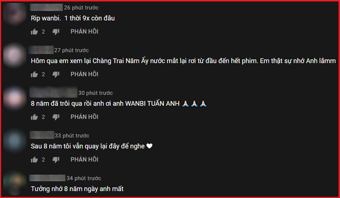 Trong ngày giỗ thứ 8 của Wanbi Tuấn Anh, nhiều khán giả đã thưởng thức lại MV Đôi Mắt và cùng ôn lại kỉ niệm với nhiều bình luận gây xúc động.
