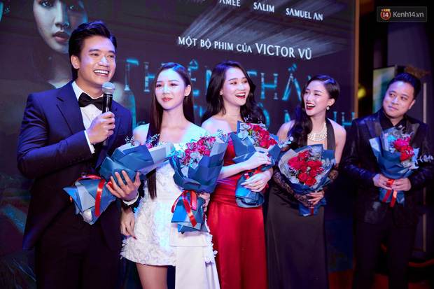 Không phải ba nữ chính xinh đẹp, nổi bật nhất tại sự kiện là màn đổ bộ của gia đình đạo diễn Victor Vũ. Sau hai kỳ sinh nở, Đinh Ngọc Diệp vẫn đẹp rạng ngời với bộ đầm kiểu cách khoe trọn bờ vai và đôi chân dài miên man, quyến rũ hơn cả ba nữ chính.