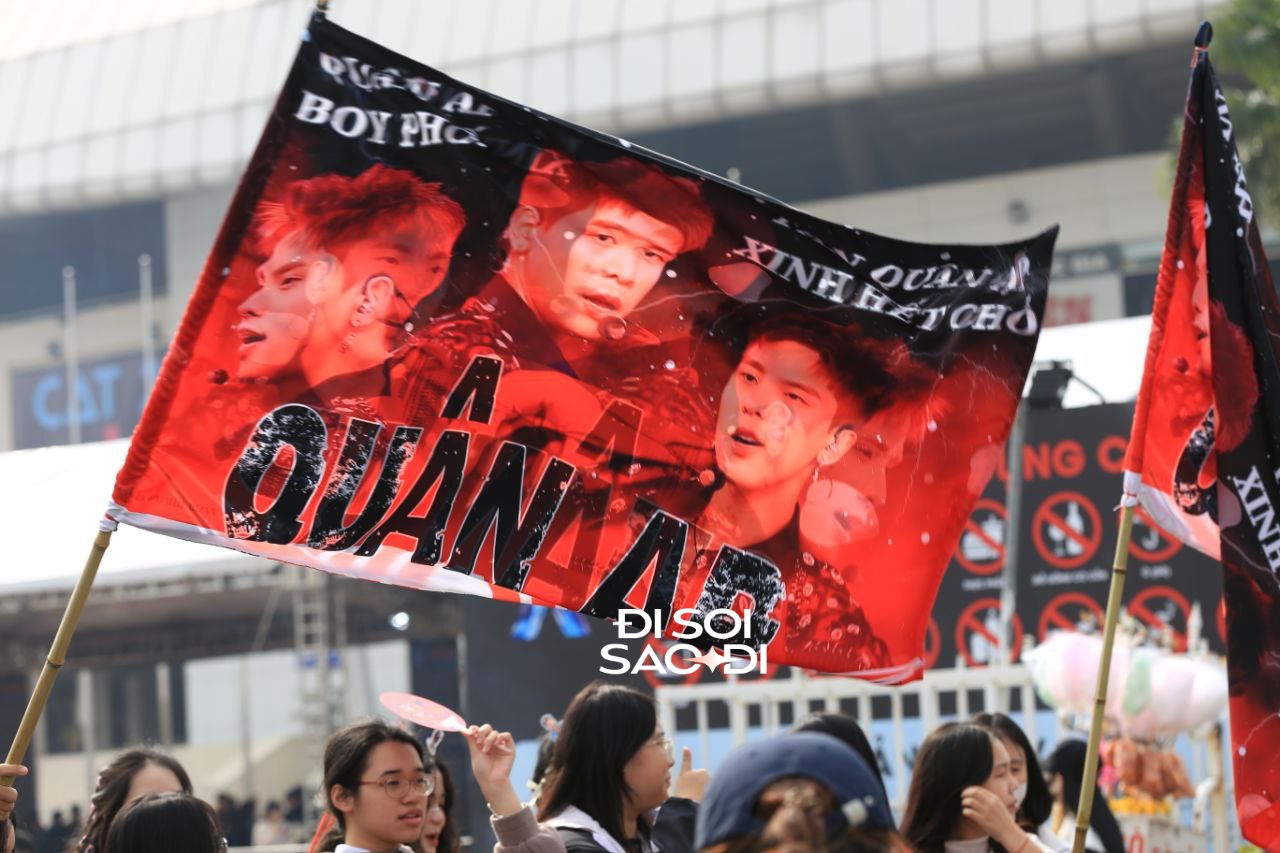 Đáng chú ý, có một khu vực được phủ đỏ bằng cờ của Anh Trai Quân A.P. Ngày 7/12, FC Quân A.P gây tranh cãi khi bất ngờ huỷ booth chụp ảnh ngay trước giờ G khiến nam ca sĩ lỡ mất cơ hội giao lưu với người hâm mộ.