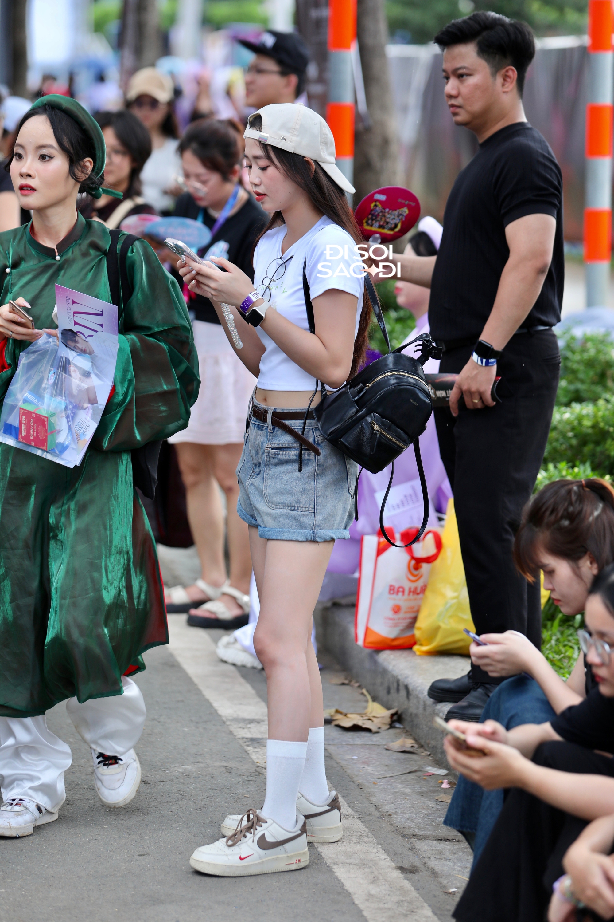 Cập nhật đến 14h30 chiều 19/10, khu vực xếp hàng của Anh Trai Vượt Ngàn Chông Gai càng đông đúc hơn. Đáng chú ý, các Gai Con lên đồ như đi dự lễ thời trang, mỗi người một phong cách nhìn vô cùng bắt mắt.