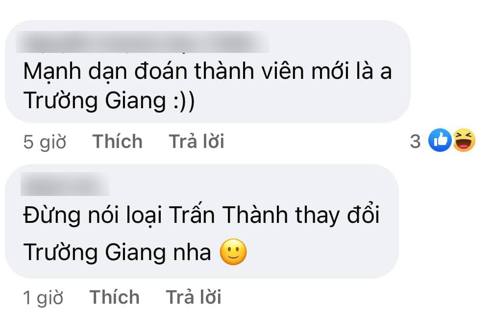 Và mọi chuyện chưa dừng lại ở đó. Nguồn tin trên còn khẳng định chắc nịch rằng Trấn Thành sẽ bị thay thế bởi Trường Giang. Trước đó, có tin đồn một thành viên cốt cán của mùa 1 đang được cân nhắc sẽ bị loại. Nguyên nhân vì người này muốn bành trướng, thêm thắt người nhà, về phía NSX, họ tối kị nhất là chuyện nâng đỡ công khai thế này nên đã "say bye" luôn và ngay.