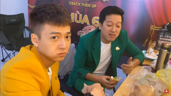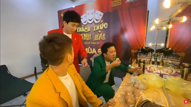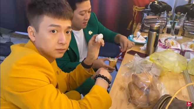 Trường Giang thấy có người hỏi liền đáp: "Chúng tôi đang ăn bánh mỳ thôi. Color Man mang tiếng mở tiệm bánh mỳ mà bây giờ để nghệ sĩ phải đi mua bánh mỳ ăn thế này đây".