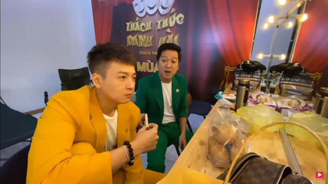 Vừa qua, ca sĩ Ngô Kiến Huy đã đăng tải lên trang Youtube cá nhân của mình một clip quay lại cảnh anh đang ngồi ăn bánh mỳ cùng Trường Giang trong hậu trường chương trình Thách thức danh hài. Dù là những nghệ sĩ nổi tiếng nhưng họ vẫn ăn uống giản dị.