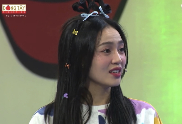 Sau khi nghe câu này, Trương Thế Vinh bật cười còn "ngọc nữ" thay đổi biểu cảm 360 độ từ vui vẻ sang ngỡ ngàng, Thuý Ngân - Lâm Vỹ Dạ cũng không tránh khỏi bất ngờ. Trường Giang vội nói: "Quá nặng nề" còn Lâm Vỹ Dạ chia sẻ rằng Trương Thế Vinh chưa bao giờ nói những lời như vậy trước kia.