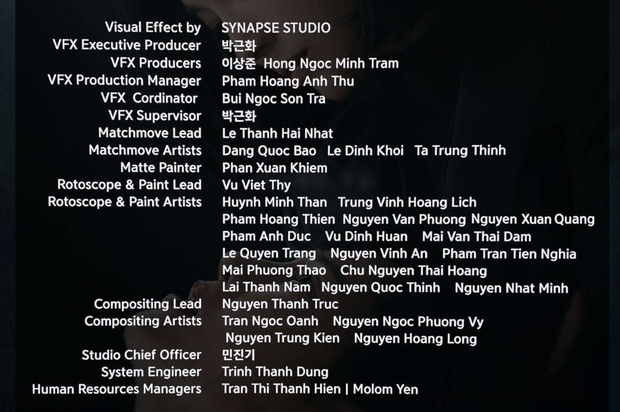 The Glory 2 hiện là tiêu điểm được bàn tán tại khắp các diễn đàn phim ảnh, ngoài yếu tố kịch bản và diễn viên thì khâu hậu kỳ góp phần không ít trong sự thành công vang dội này. Đáng chú ý, trong tập 14 ở phần credits phim hàng loạt cái tên Việt Nam xuất hiện trong đội ngũ sản xuất ở nhiều vai trò nhau. Có thể thấy đội ngũ người Việt đã góp phần tạo nên những thước phim hoàn hảo trong dự án mà Song Hye Kyo đóng chính.