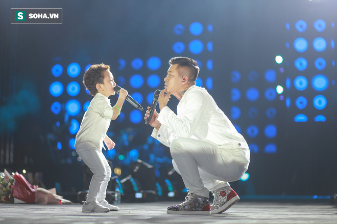 Điều đặc biệt là, trong lúc Tuấn Hưng đã trình diễn Tìm lại bầy trời, con trai anh là bé Khánh An đã chạy lên sân khấu "cướp mic" của bố để hát cùng.
