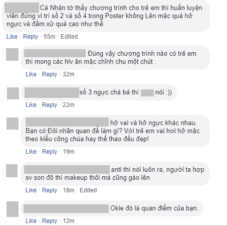 Tuy nhiên, vẫn có bình luận cho rằng vì đây là chụp poster nên có thể châm chước bỏ qua chuyện ăn mặc gợi cảm, miễn sao khi đối diện với các bé, 4 HLV mặc trang phục đúng chuẩn mực là được!