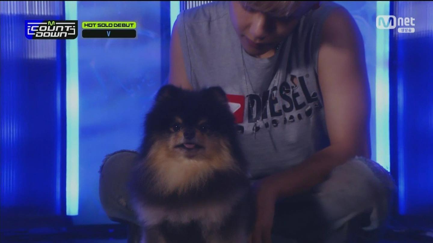 Chú chó Yeontan của V (BTS) đã chính thức có màn ra mắt trên sân khấu M!Countdown vào ngày 14/9 vừa qua. Trong phần trình diễn ca khúc mới Slow Dancing, V đã không ngại ngần dẫn cún cưng của mình lên sân khấu ngay từ những giây mở màn.