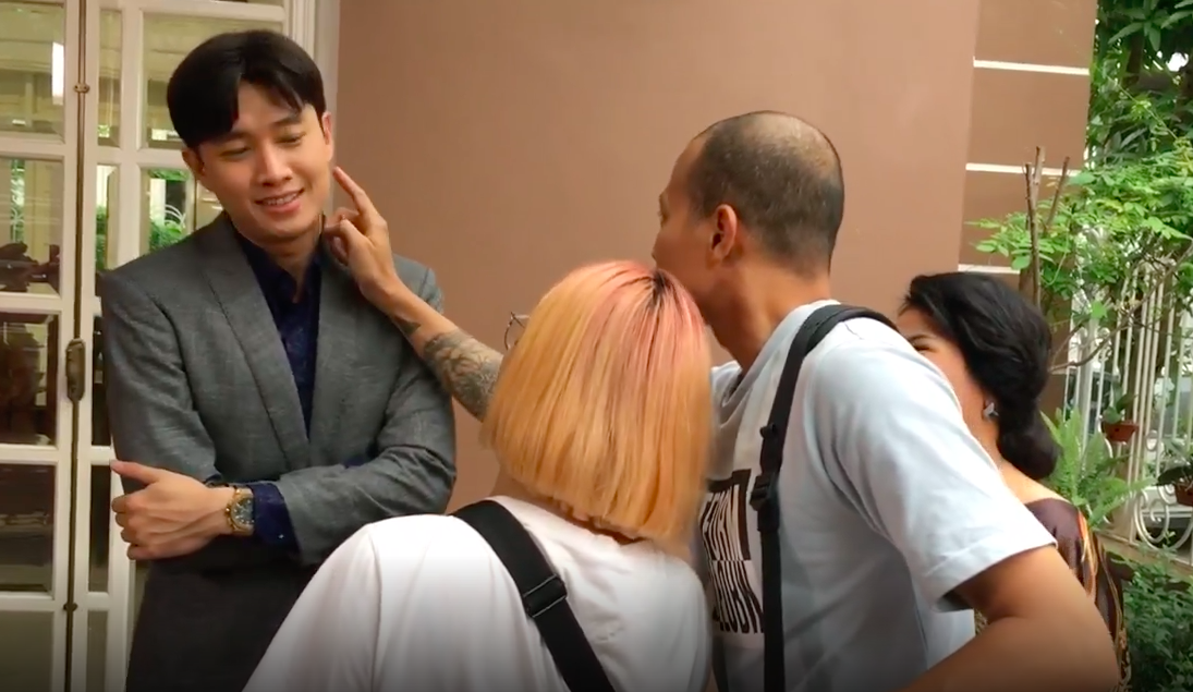 Hóa ra, đây là cảnh hóa trang Vũ có vết son môi trên mặt. Để phần hóa trang chân thật nhất, nhân viên hóa trang đã đặt môi của mình lên má vũ. Chứng kiến cảnh này, "mẹ" Ngân Quỳnh và các anh em trong ekip đều phá ra cười ngất. Không phải Thư hay ai khác, đây chính là cô gái công khai hôn Vũ nhưng Thư lại chẳng thể đánh ghen.