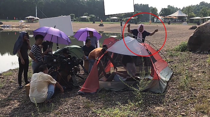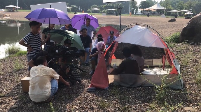 Để quay phân cảnh này, cả ê kíp đã phải dãi nắng trong điều kiện thời tiết nóng cực độ của miền Bắc thời gian qua. Trong hậu trường, nhân viên đoàn phim đã gọi chiếc lều cắm trại mà Bảo và Ánh đang ngồi phía trong là "lồng hấp". Có thể thấy, hotgirl Lena - thủ vai Ánh cũng đã mướt mải mồ hôi trên mặt và tóc, vừa tập thoại vừa phải lau mồ hôi.