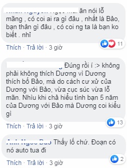 Ngay sau khi xem xong trích đoạn, nhiều khán giả bày tỏ sự thất vọng với Ánh Dương và để lại bình luận: 'Không phải không thích Dương vì Dương thích bố Bảo, mà do cách cư xử của Dương với Bảo, vừa cục súc vừa lỗ mãng.'; 'Thái độ Dương ngày càng bố láo nhìn phát ngán.'; ' Thật sự mấy tập sau này thấy ghét Dương quá, chẳng còn thích như trước vì lỗ mãng,nhố nhăng.'; 'Càng coi càng thấy ghét Dương. Nam không ra nam, nữ không ra nữ, ăn nói thì xấc láo chỉ muốn đấm cho phát. Bảo mắt mờ mới đi yêu cái con dở hơi đó'; 'Lúc đầu xem thấy thích Dương thế, nhưng giờ lại thấy cư xử quá đáng với Bảo quá . Càng có người quan tâm thì càng được nước lấn tới đến khi mất đi rồi lại thấy hụt hẫng . Mong là đến khi Bảo đi sang với mẹ thì Dương sẽ cảm nhận được sự quan tâm của Bảo và sẽ thấy điều gì mới là quan trọng nhất của mình.'; 'Nhiều lúc thấy Dương quá đáng thật sự. Dù Bảo yêu như nào đi chăng nữa thì D cũng có chút tôn trọng ngược lại khi là bạn bè chứ. Thôi nghỉ khoẻ.'...
