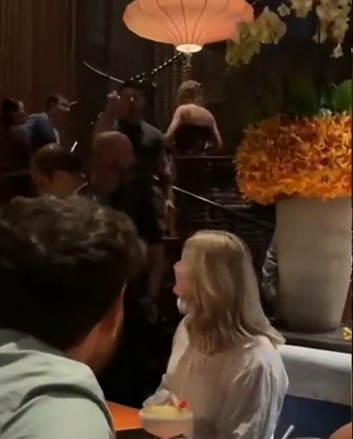Trong video được Gary chia sẻ trên TikTok, khi Taylor Swift đứng dậy rời khỏi bàn tiệc, vệ sĩ phát hiện ra người hâm mộ đang ghi hình. Anh vẫy tay yêu cầu Gary ngừng ghi hình, kèm hành động chiếu đèn thẳng về ống kính.