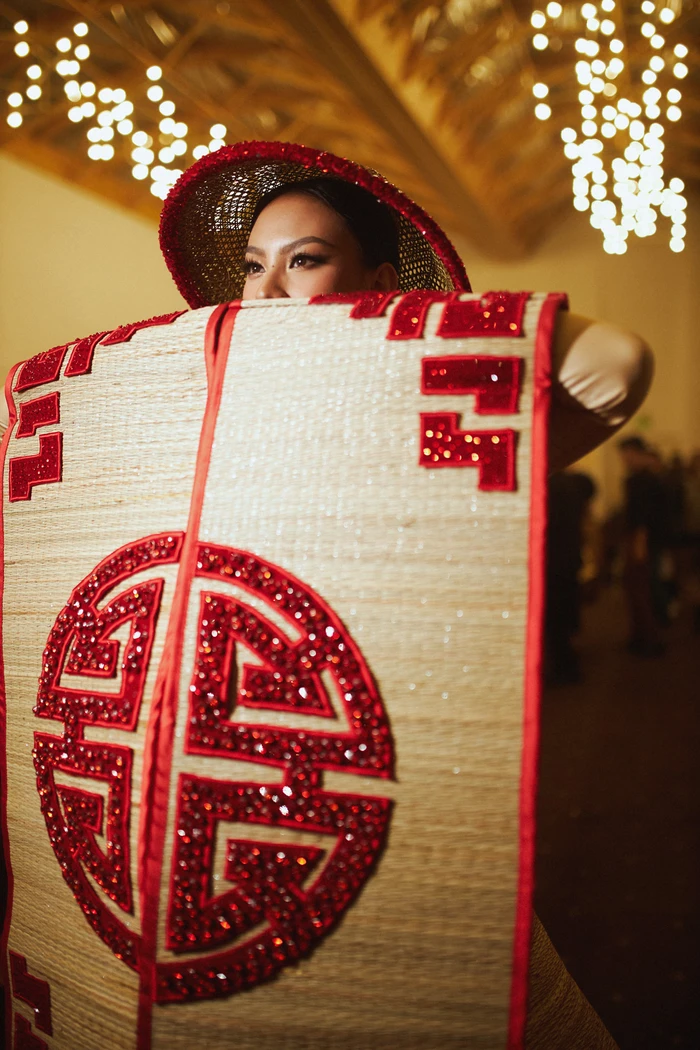 Phía đại diện đơn vị nắm giữa Miss Universe tại Việt Nam nói thêm: "Vì thời lượng biểu diễn của trang phục dân tộc Chiếu Cà Mau không quá dài, chỉ khoảng 15 giây trên sân khấu Miss Universe và cũng với mục đích đề cao quảng bá vẻ đẹp văn hoá Việt Nam một cách nguyên bản đến bạn bè quốc tế, chúng tôi quyết định tiến hành thay đổi họa tiết mặt trong và ngoài của phần vạt tay áo thành biểu tượng Hoa Sen nhằm tôn vinh rõ nét văn hoá Việt Nam".