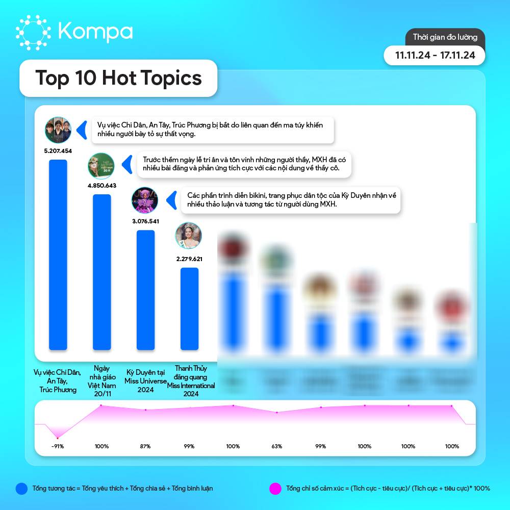 Kết quả này được thống kê trong khoảng thời gian 1 tuần (từ ngày 11-11 đến 17-11) do Kompa thực hiện.