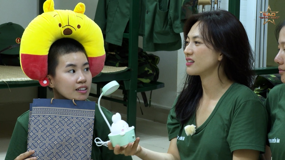 Tấm lòng của các chiến sĩ cũ khiến dàn cast "Sao nhập ngũ" không khỏi cảm kích. Jun Vũ chia sẻ: "Khi nhận những món quà đó tôi thấy chúng tôi còn không bằng các chiến sĩ. Các nam chiến sĩ rất để ý và quan tâm chúng tôi. Tôi không nghĩ người bộ đội mạnh mẽ, tinh thần thép lại có thể chọn được những món quà dễ thương, tinh tế như vậy cho chúng tôi. Thực sự chúng tôi rất thích".
