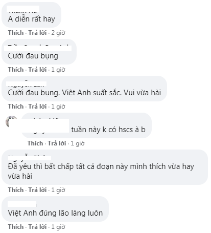 Sau khi phim lên sóng, trên các fanpage bình luận về phim, hàng loạt khán giả để dành lời khen cho diễn xuất có duyên và hài hước của Việt Anh. Đặc biệt, 'bạn gái tin đồn' Quỳnh Nga cũng để lại bình luận: 'Cười không nhặt được miệng. Anh nên để rắn cắn nhiều vào'.