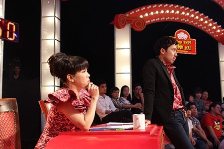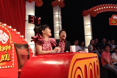 Trấn Thành và Việt Hương chăm chú theo dõi tiết mục của Hoàng Sơn |