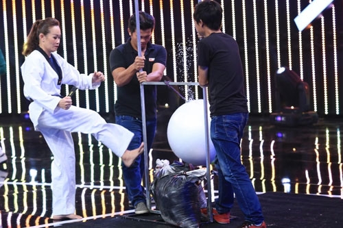 Ở vòng thi mang tên "Ai là người có sức công phá mạnh hơn", hai đấu thủ dùng sức mạnh chân hoặc tay để làm thủng quả cầu khiến kẹo đổ ra ngoài. Chiến thắng thuộc về huấn luyện viên Taekwondo Nguyễn Thị Huyền Diệu (36 tuổi). Chị Diệu đã gắn bó với bộ môn này được 23 năm với 4 lần đoạt huy chương vàng SEA Games và một huy chương đồng thế giới. |