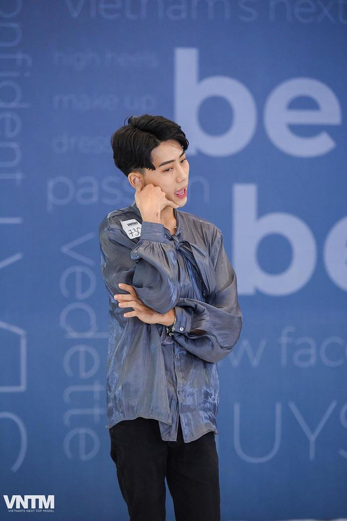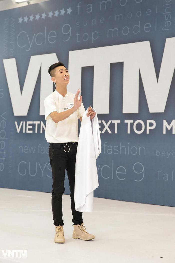 Xuất hiện đầu tiên trong vòng thi phỏng vấn là thí sinh Bùi Võ Tấn Phát, 22 tuổi. Sau màn thể hiện “gây shock” trong phần thi hình thể khi vừa catwalk vừa gội đầu, Tấn Phát lại tiếp tục mang những điều thú vị khi chào sân với một chiếc khăn trắng. Anh chàng đã sử dụng chiếc khăn này làm đạo cụ để thể hiện trích đoạn cải lương “Tiếng trống Mê Linh".