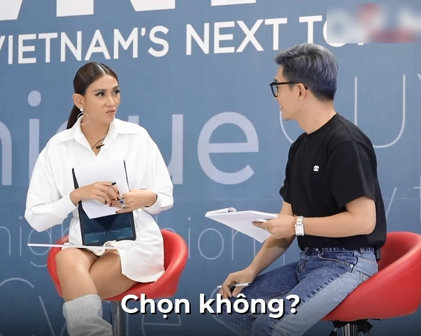 Võ Hoàng Yến tiếp tục khen ngợi: 'Chị rất thích khuôn mặt của em, nó rất high fashion." Vừa nghe đến đây, Mâu Thủy liền hỏi ngược: "Chị thích sao chị không chọn?", Võ Hoàng Yến trả lời: "Tại vì hơi thấp nên chị hơi suy nghĩ. Nhưng mặt bạn này rất đặc biệt, nhìn một cái là nhớ luôn, không quên được."