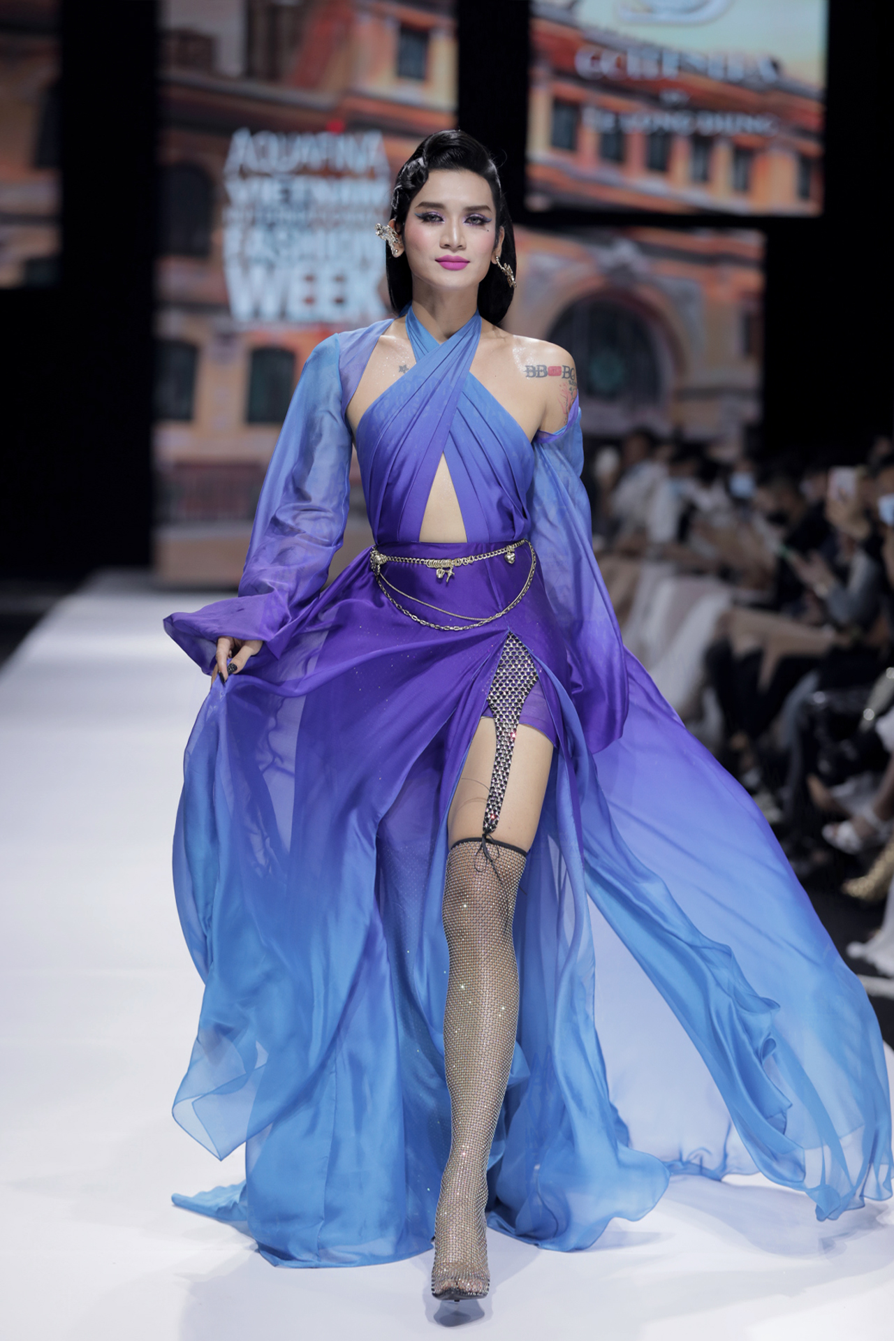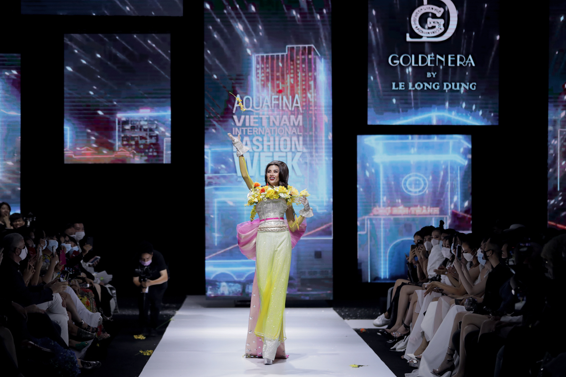 Là NTK quen thuộc với sự kiện thời trang được mong chờ nhất năm: Aquafina Tuần lễ Thời trang Quốc tế Việt Nam 2020 - Aquafina VietNam International Fashion Week 2020, NTK Lê Long Dũng đã “chiêu đãi” các tín đồ yêu thời trang với BST mang phong cách rất cổ điển theo kiểu Sài Gòn xưa. Sự xuất hiện của hoa hậu Giáng My với thần thái thanh tao khiến người xem sống lại những hoài niệm về một Sài Gòn đầy hoa lệ.